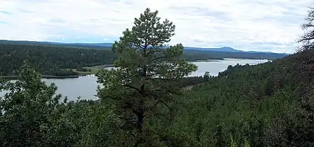 Lower Lake Mary, the furthest downstream of the two lakes is located directly below the upper lake. It is the smaller, and the first to be developed, of two lakes, reaching a maximum length of 3 miles (4.8 km) during wet seasons. At its maximum capacity, the lake fills the valley from the small earthen dam at its head to the foot of the dam holding back Upper Lake Mary. During dry seasons, however, the lake has a tendency to dry up completely. The lake is named after Mary Riordan, a daughter of the wealthy lumber barons who built the dam in 1904 for a water supply for Flagstaff.[4]