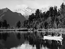 The iconic view across the lake became a much-reproduced image, featured on chocolate boxes, beer bottles, calendars, and souvenirs.[6] Lake Matheson is now one of New Zealand's most photographed lakes.[7]