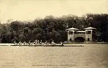The Lake Mendota Boathouse was a recreational building and storage facility owned by the University of Wisconsin located on Lake Mendota in Madison, Wisconsin.[1] It was designed and built by architect Frank Lloyd Wright after he was awarded the commission of the building in 1893 based on drawings he submitted to a competition held by the Madison Park and Pleasure Drive Association.[2] The primary functions of the building were to store recreational equipment and to serve as a viewing deck for "boating events and races that took place on the lake."