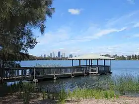 In 1902, the Municipality of Leederville appointed a board under the Parks and Reserves Act 1896 to manage the lake.[9] In 1909, construction of a drain was completed which connected the lake with the Swan River and which allowed the water level to be managed.[7][9] This drain still operates today. In 1912, the lake had an area of 111 hectares (270 acres).[4]
