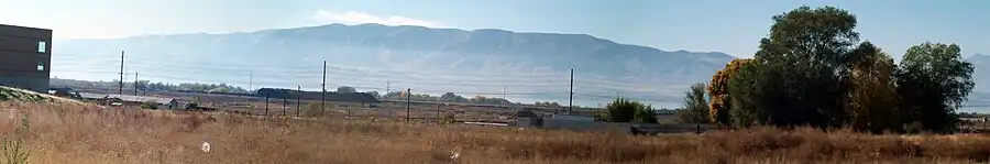 ![]() Looking west over Pleasant Grove and Utah Lake toward the Lake Mountains, September 2009 | |
