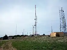 Numerous high and low power television stations call the Lake Mountains their home. KUPX's, former analog broadcast on channel 16 from a tower on the mountains. KUPX is owned by Paxson Salt Lake City License Inc and carries programming from Ion Television. Its tower was located on the northern flank of the mountain (pictured right). KUPX now broadcasts its digital television signal on channel 29 from Farnsworth Peak. K22IT, another television station on the mountains, carried programming from KTMW in Salt Lake City. It remained in analog, and had no application to transmit in digital. Its license has since been deleted. KUTH, Salt Lake City's Univision affiliate, broadcasts its digital broadcast from the Lake Mountains on channel 32. K43JV, a lower power television translator, carries programming from 3ABN. It broadcasts on channel 43. Currently it has a construction permit to transmit in digital on RF channel 16, the former analog home of KUPX.[12] K49GD, channel 49, was a translator for KTMW and carried a variety of programming. K49GD was licensed to Spanish Fork. The station license was deleted by the FCC. KUTH filed an application with the FCC to move its transmitter to Farnsworth Peak which would leave only K43JV transmitting from the mountain. This move will allow KUTH to better serve the Wasatch Front because of Farnsworth Peak's higher terrain and close proximity to Salt Lake City.[13]