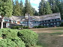 The southern side of the lake is home to the historic Lake Quinault Lodge and the Rain Forest Resort Village and is encompassed by the Olympic National Forest. The Quinault Loop Trail on the south side of the lake and the nearby Quinault Rain Forest Interpretive Trail connecting campgrounds, trails, and the lodge, with excellent temperate rainforest viewing. Each trail was designated a National Recreation Trail in 1979.[2][3] The north side of the lake is bordered mainly by private homes and some small resorts located in Olympic National Park.