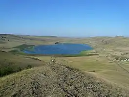 Lake Shunet is a meromictic lake[1] near the selo of Shira in the Republic of Khakassia, Russia. It belongs to the Shirin group of lakes. It is located 7 km south of the Lake Shira, in a deep basin, at around 390 m above sea level.