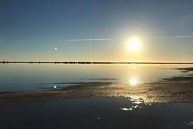 In the mid-2010s, the lake became a tourist mecca, particularly for Chinese.[4] It is a popular location for photographers and social media users, who take snaps of the lake's mirror-like surface during winter, when ground water percolates to the surface and inflows arrive from the Avoca River/Tyrrell Creek system.