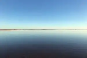 While much of the time the lake is dry, it is usually covered in about 5 centimetres (2 in) of water in winter.[7] It is ancient, and probably formed by sand blocking the passage of Tyrrell Creek, a distributary of the Avoca River, which feeds the lake.[5][6] Evaporation results in a layer of salt crusting on the lake bed, which is harvested by Cheetham Salt in Sea Lake.