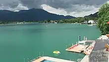 Lake Wolfgang[1][2][3] (German: Wolfgangsee) is a lake in Austria that lies mostly within the state of Salzburg and is one of the best known lakes in the Salzkammergut resort region. The municipalities on its shore are Strobl, St. Gilgen with the villages of Abersee and Ried as well as the market town of St. Wolfgang in the state of Upper Austria. The town and the lake are named after Saint Wolfgang of Regensburg, who, according to legend, built the first church here in the late 10th century.