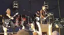 ![]() Lake of Tears at ProRock 2009 in Ukraine. From left to right: Fredrik Jordanius, Mikael Larsson, Johan Oudhuis and Daniel Brennare. | |