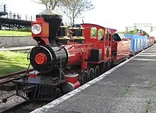 The line originally had two steam locomotives of the Bassett-Lowke Class 10 'Atlantic' 4-4-2 design, named King George and Princess Elizabeth, they were later supplemented by Katie, an 0-4-0 side tank built by that pioneer of the minimum gauge Sir Arthur Heywood. Where the two Bassett-Lowke locos had been supplied new Katie was third hand, having already worked on the Eaton Hall Railway (where she hauled a Royal train in 1897)[26] and the Ravenglass and Eskdale Railway in Cumbria.[27] She did not spend long at Southport, arriving in 1919 and being sold on again in 1923 to the Fairbourne Miniature Railway.