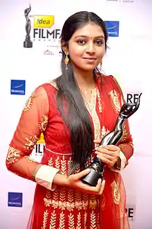 She is a winner of Filmfare Award for Best Female Debut – South in 2013.[3] She has also received Tamil Nadu State Film Award for Best Actress for her roles in Sundarapandian and Kumki.[4]