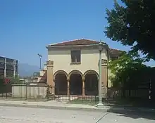 Lamanda Park began as a 1,300 acres Sunny Slope Ranch large agricultural ranch purchased and owned by German immigrant L.J. Rose. Later a number of wineries opened in Lamanda Park like: Sunny Slope Winery, Sierra Madre Vintage Company, Golden Park Winery, Mountain Wine Company, and A. Brighton Winery. These operated from 1865 to 1923. On September 16, 1885, the Los Angeles and San Gabriel Valley Railroad opened the first train stop at Lamanda Park. The rail line ran from Lamanda Park to downtown Los Angeles, with a stop at downtown Pasadena and later South Pasadena, California. By January 1887 the rail line continued on to Azusa, California and later that year to Monrovia, California. At its peak Lamanda Park had its own paper, Herald Lamanda Park, post office, movie house, bank and school. Park had many citrus groves and vineyards, the station provided shipping for these goods. Prohibition ended the wineries and all that remains are grape-inspired street names like: Del Vina, Vine, Vinedo, Vineyard, and Mataro. The last Citrus packer was Sierra-Madre Lamanda Park Citrus Association, they boxed oranges, lemons, limes, and grapefruit. The packing house was at the corner of Walnut Street and San Gabriel Boulevard. Pacific Electric initiated their Lamanda Park Line streetcar service to Pasadena in 1905 and operated the line until 1941. The Los Angeles and San Gabriel Valley Railroad line later became part of the Atchison, Topeka and Santa Fe Railway, and service to Lamanda Park ended in the 1950s. This rail right-of-way later became the A Line tracks, and a stop returned nearby with the Sierra Madre Villa station. Lamanda Park doubles as Bedford Falls in 1946 It's a Wonderful Life movie, including a shot at the Lamanda Park train station. The station was demolished in 1953.[2][3][4]