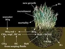 - ↑ Sharmishtha Dattagupta, Lara L. Miles, Matthew S. Barnabei, Charles R. Fisher (2006). "The hydrocarbon seep tubeworm Lamellibrachia luymesi primarily eliminates sulfate and hydrogen ions across its roots to conserve energy and ensure sulfide supply". Journal of Experimental Biology. 209 (19): 3795–3805. doi:10.1242/jeb.02413. PMID 16985196.