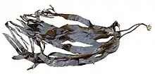 Recent molecular genetic insight has led some researchers to suggest that the genetic species known as Laminaria nigripes ought to be a part of the genus Saccharina.[2] Specifically, the genus Saccharina Stackhouse from 1809 is proposed for revival. The revived Saccharina Stackhouse would include the genera Hedophyllum and Kjellmaniella, the species Cymathaere japonica, and certain species from Laminaria.[2] With the re-establishment of Saccharina Stackhouse, Laminaria nigripes would be renamed Saccharina nigripes.[2]