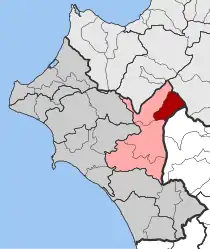 Lampeia (Greek: Λάμπεια, before 1928: Δίβρη - Divri,[2] between 1928 and 1929: Πρινόφυτον - Prinofyton[3]) is a mountain village, a community and a former municipality in Elis, West Greece, Greece. Since the 2011 local government reform it is part of the municipality Archaia Olympia, of which it is a municipal unit.[4] The municipal unit has an area of 72.447 km2.[5] In 2011 the population of the village was 468, and of the community, which includes the village Amygdali, 529.