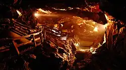 In 1905, several human skeletons were found in the cave, probably the remains of treasure hunters.[1] At the same time, a 600-metre (2,000 ft) portion of the cave was opened to the public as a show cave.[1]