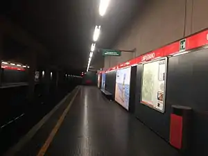 Lampugnano is an underground station on Line 1 of the Milan Metro in Milan, Italy. The station was opened on 12 April 1980 as part of the extension from Lotto to San Leonardo.[2] It is located on Via Giulio Natta, in the Lampugnano district, from which it takes its name. It is located near the Palasharp and the main terminal for intercity bus service.