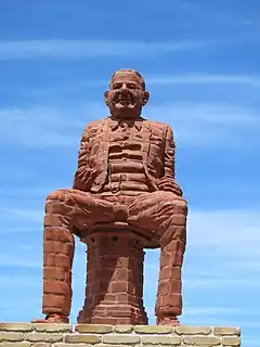 A statue of Lance Brisbane erected by an unknown artist at the Ascot Brick Works in 2021