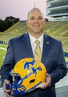 Lance Guidry (born March 25, 1971) is an American football coach and former player. He is the defensive coordinator at the University of Miami in Coral Gables, Florida, a position he has held since the 2023 season. Guidry served as the head football coach at McNeese State University from 2016 to 2018. He was also the interim head football coach at Miami University in Oxford, Ohio for one game in 2010 and at Western Kentucky University for one game in 2012. Guidry played college football as a defensive back at McNeese State from 1990 to 1993. He was a four-year starter, a team captain, and a two-time All-Southland Conference selection. Guidry ranks 17th on the McNeese all-time tackle leader board and also 10th in interceptions.