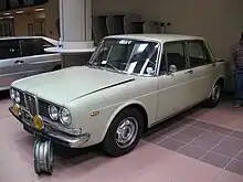 Later development of the engine included an enlargement to 1.8 L, a mechanical injection version using the Kugelfischer system, and a five-speed manual gearbox.[6] In May 1967 a rebodied version of the Berlina with a new interior went on sale, with model number 819, it is usually referred to as the Series II. The engines were originally the same as earlier (74 mm stroke in 1500, 1800, 1800 fuel injected), but in 1969 these were changed to a new generation with an 80 mm stroke, narrow-bore versions of the new 2-litre 820-series engine.[7] With the introduction of the 819, the Vignale and Zagato versions were discontinued, while the coupé model was on hiatus. The coupé version then returned with new bodywork, first presented in March 1969 at the Geneva Motor Show.[8] The engine increased to 2.0 L in capacity, available with carburetion or injection, and four- or five-speed gearbox. The 2.0 L models were only made with revised Pininfarina coupé and revised Lancia sedan bodies. Then in 1971, after Fiat took control of the company, the "Flavia" badge was discontinued as were the smaller engines, leaving only the 2000 Berlina and coupé.