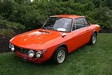 The Fulvia Berlinetta Competizione was a concept car by Ghia first displayed at the March 1969 Geneva Motor Show.[11] It was built with a fastback berlinetta body designed by Tom Tjaarda, using a Fulvia Rallye 1.6 HF Fanalone floorpan and mechanicals.[12]