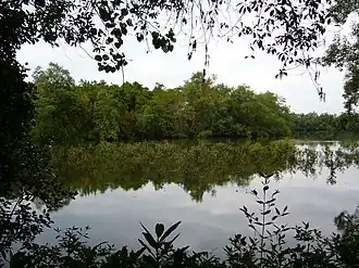 Such development has led to the loss of 95% of Singapore's mangroves.[17] When Stamford Raffles arrived in Singapore in 1819, the land was largely mangrove swamp; today, mangrove cover accounts for less than 0.5% of Singapore's total land area.[18][19] This loss has greatly diminished the beneficial effects of mangroves, which include protection against erosion and reduction in organic pollution,[20] both of which serve to ameliorate coastal water quality.[20]