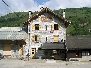 Gare de Landry is a railway station located in Landry, Savoie, south-eastern France. The station is located on the Saint-Pierre-d'Albigny - Bourg-Saint-Maurice railway. The train services are operated by SNCF. It serves the village of Landry and neighbouring ski resorts of Peisey-Vallandry and Montchavin-les Coches. The station is served by TGV and Eurostar high speed services, as well as local TER Auvergne-Rhône-Alpes services.[1]