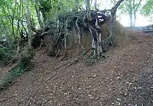 Part of the area has a 2-metre layer of Red Crag, i.e. fossilised seashells coloured red by iron, sitting on top of London Clay.[6]