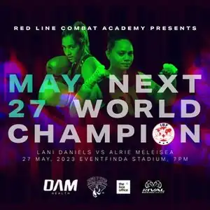 Lani Daniels vs Alrie Meleisea, billed as Next World Champion is a scheduled boxing fight between Lani Daniels and Alrie Meleisea. It will take place on 27 May 2023 at Eventfinda Stadium in Auckland, New Zealand. This fight will make history for being the first World title between two New Zealand born boxers and the first World title between Maori and Pasifika people.[1] Lani Daniels is well known for her first world title opportunity when she fought against Geovana Peres in their rematch dubbed History In The Making. Daniels three New Zealand title including the NZPBA Light Heavyweight title, Pro Box New Zealand Light Heavyweight title and Pro Box New Zealand Super Middleweight title.[2] She represents her Iwi the Ngāti Hine.[3] She is the second New Zealand Born female to be fighting for a major World title. The first being Daniella Smith, who is from the same hometown as Lani Daniels.[4] Alrie Meleisea is a New Zealand born Samoan who has won three titles in her career including the NZPBA Heavyweight title, UBF Asia Pacific title and Pro Box New Zealand title.[5][6]