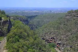 Lapstone is a township on the eastern escarpment of the Blue Mountains in New South Wales, Australia. Elevation 160 m (525 ft). Lapstone is located 62 kilometres west of the Sydney CBD in the local government area of the City of Blue Mountains and is part of the federal electorate of Macquarie.[2] Lapstone consists mostly of stand-alone housing and has a few public facilities. At the 2016 census, Lapstone had a population of 961 people.[3] Lapstone was originally bought and developed by Mr Arthur J Hand, an Alderman of the Blue Mountains City Council.