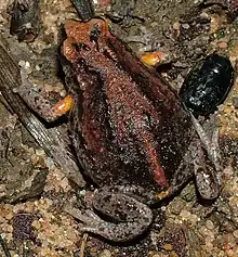 The large toadlet or great toadlet or major toadlet (Pseudophryne major) is a species of ground-dwelling frog native to eastern Queensland (including Moreton and North Stradbroke Island) and northern New South Wales, Australia.