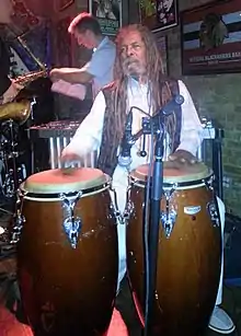 Larry McDonald is a Jamaican percussionist.[2][3] He was born in Port Maria, Jamaica in 1937. McDonald played congas with Carlos Malcolm's band, Toots and the Maytals and the Count Ossie Band. He plays a wide variety of traditional percussion instruments.[4]