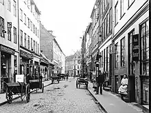 The southern part of the street has existed since at least 1388. It received its current name in around 1460 when a Laurids Bjørnson (Lars Bjørn) owned a property in the street.[1] The street was later extended to Sankt Peders Stræde. The section from Vestergade to Studiestræde was initially called Store Larsbjørnsstræde (Great Larsbjørnsstræde) while the section from Studiestræde to Sankt Peders Stræde was called Lille Larsbjørnsstræde (Little Larsbjørnsstræde).[2]
