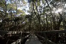 The Las Piñas–Parañaque Critical Habitat and Ecotourism Area (LPPCHEA) are composed of two primary islands; Freedom Island and Long Island. The area is covered with mangroves, ponds and lagoons, mudflats, salt marshes, and mixed beach forests.[13] The entire LPPCHEA covers an area of 181.63 hectares (448.8 acres); about 114 hectares (280 acres) of which are by tidal mudflats, and 30 hectares (74 acres) of which are by its mangrove forest.[14]
