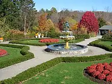 - William and Mildred Lasdon Memorial Garden (0.4 ha / 1 acre) - an entrance court with a fragrance garden; a formal garden with boxwood hedges, heather, flowering annuals and bulbs, and a central fountain; and a synoptic garden featuring hundreds of shrubs whose names represent every letter in the alphabet, from "A" (Abelia) through "Z" (Zenobia).