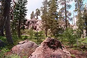 Lassen National Forest is located about 80 miles (130 km) east of Red Bluff, California. It is bordered by Sierra Nevada mountain range to the south, the Modoc Plateau to the east and California's Central Valley to the west. The forest is in parts of Lassen, Shasta, Tehama, Plumas, and Butte counties.[4] Forest headquarters is located in Susanville, California. There are local ranger district offices in Chester, Fall River Mills, and Susanville.[5]