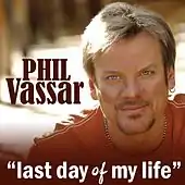 "Last Day of My Life" is a song co-written and recorded by American country music singer Phil Vassar. It was released in February 2006 as the first single from his compilation album Greatest Hits, Vol. 1, and Vassar's twelfth chart single overall. The song reached a peak of number 2 on the Billboard Hot Country Songs charts. It was written by Vassar and Tim Ryan.