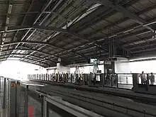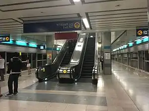 Lat Phrao station (Thai: สถานีลาดพร้าว, pronounced [sā.tʰǎː.nīː lâːt pʰráːw]) is a Bangkok MRT station on the Blue Line and Yellow Line located on Ratchadaphisek Road, near its intersection with Lat Phrao Road. It is the northern terminus of the Yellow Line. Although the station's name is Lat Phrao, it is located in Chatuchak district, not Lat Phrao district and Central Plaza Lat Phrao is nearer to Phahon Yothin station. Its symbol color is   light blue.[1]