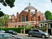 The street was built in 1875 and was named after a prominent Paddington resident the Earl of Lauderdale, an admiral in the Royal Navy.[1] Built some time after the streets to the south of it were laid out, it was not until the late nineteenth century and the Edwardian era that the area was completed. It features large red brick mansion blocks with apartments, in contrast to the area further south which featured the white stucco terracing of the early-to-mid Victorian era.[2] Typical of the style of the street, and surrounding area, is Lauderdale Mansions South. In 1896 the Lauderdale Road Synagogue was built in the street to serve the significant Jewish population in the area.[3] It was constructed in the Neo-Byzantine style and is now Grade II listed.[4][5]