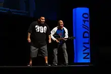 ![]() The Laughing Samoans on stage during National Young Leaders Day 2010 in Wellington, New Zealand. | |