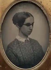 Bridgman suffered a series of emotional losses during her teenage years and early twenties. In 1841, Lydia Drew, Laura's first teacher at the Perkins School, left her teaching position to marry. Drew was replaced by Mary Swift, an excellent teacher, though not as openly affectionate with Bridgman as Drew had been.[24] Swift also attempted to instill Bridgman with her Congregationalist religious views in direct defiance of Howe's New England Unitarianism.[25] An even more devastating loss occurred in May 1843 when Howe married Julia Ward, a woman 18 years his junior. Howe had treated Bridgman as a daughter, and she had loved him as a father. She was depressed by the lengthy separation following the marriage—the Howes' honeymoon in Europe lasted 15 months—and worried that Howe would no longer love her now that he had taken a wife.[26] Bridgman's fears were realized when the couple returned from their honeymoon in August 1844. Howe had lost interest in Bridgman, though he had made provisions for her to have a home at the school for life.[27] Bridgman never developed a close relationship with Julia Ward Howe who, according to her daughters, had a "physical distaste for the abnormal and defective" and a "natural shrinking from the blind and other defectives with whom she was often thrown" following her marriage to Howe.[28] Mary Swift left the school in May, 1845 to get married, leaving Bridgman without any instruction for several months.[29] Bridgman's next teacher, Sarah Wight, compensated for many of the losses Bridgman had suffered in recent years. A gentle, religious, outwardly timid young woman to whom Bridgman was immediately drawn, Wight taught Bridgman the traditional academic subjects — mathematics, history, geography — but she also set aside plenty of time for the two of them to engage in "finger" conversations, one of the activities Bridgman liked best.[30] While Wight cared deeply for Bridgman, she also felt that, because of her "celebrity" status, the girl enjoyed privileges denied to other students.[31] Bridgman had a private room, and she rarely mingled with the other students unless they paid her "particular attention".[32] Wight also saw that Bridgman could be willful and irritable, behavior characteristics that required discipline.[33] Bridgman could also be emotionally demanding of her young teacher, becoming peevish and short-tempered whenever Wight wanted some time alone.[34]
