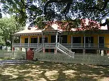 Laura Plantation is a restored historic Louisiana Creole plantation on the west bank of the Mississippi River near Vacherie, Louisiana, (U.S.), open for guided tours.[2] Formerly known as Duparc Plantation, it is significant for its early 19th-century Créole-style raised big house and several surviving outbuildings, including two slave cabins. It is one of only 15 plantation complexes in Louisiana with this many complete structures.[2] Because of its historical importance, the plantation is on the National Register of Historic Places. The site, in St. James Parish, Louisiana, is also included on the Louisiana African American Heritage Trail.