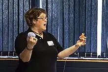 - Lamb, Evelyn (April 24, 2015), "Mathematics, Live: A Conversation with Katie Steckles and Laura Taalman", Roots of Unity, Scientific American