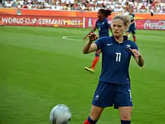 Laure Maud Yvette Lepailleur (born 7 March 1985 in Bernay) is a former French football player who played for Lyon, Paris Saint-Germain and other French clubs, and for the French national team. Lepailleur primarily played as a midfielder, but also as a defender.