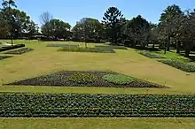In 1904 Stephens purchased two lots of land totalling approximately 1087m2 on Hill Street, West Toowoomba. Over the next 12 years he incrementally acquired another 44 lots creating an area of approximately 4 hectares, and removed existing houses from the properties.[14] By 1918 the majority of the block bounded by Hill, West and Herries streets was in Stephens' ownership.[15] As the land was cleared, Stephens transformed it into an extensive garden which by 1934 was considered to be one of the most beautiful in Toowoomba.[16][1]