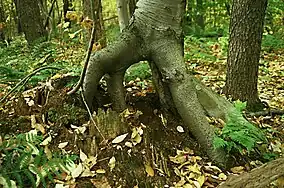 One tree grows from the rotting stump of another at Laurel Ridge State Park