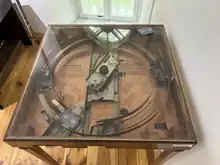 Hammond's work on the synchronous motor led him in 1928 to set up the Hammond Clock Company, with six workers, above a grocery store in Chicago.[6] Demand was high and the business soon grew into a large factory.[4] He was responsible for a number of other inventions, such as an electric bridge table.[9] A mechanism below the $25 table's surface shuffled the cards and dealt them to each of the four players.[10]