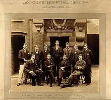 Guy's Hospital staff 1896. Lauriston Elgie Shaw, front row, second from left.[1]