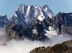 ![]() The Lauteraarhorn (centre-left) and the Schreckhorn (center-right) seen from the east | |