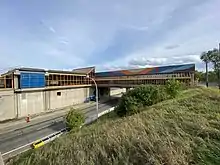 Spacing... Aerial Highways, a large 300 foot ceramic tile mural designed by Claude Breeze,[13] spreads across the north face of the main station building above the bus platform.