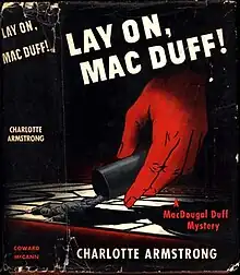 Lay On, Mac Duff! is a 1942 mystery novel by the American writer Charlotte Armstrong. It was first published in New York by Coward-McCann, an imprint of Putnam.[1] The first of a trilogy featuring amateur detective MacDougal Duff, it was followed by the The Case of the Weird Sisters (1943) and The Innocent Flower (1945). The title is a punning reference to both the protagonist's name and a line from William Shakespeare's Macbeth, with the following two titles in the trilogy also referring to the play.[2] It was Armstrong's debut novel, following two Broadway plays that made no great impact.